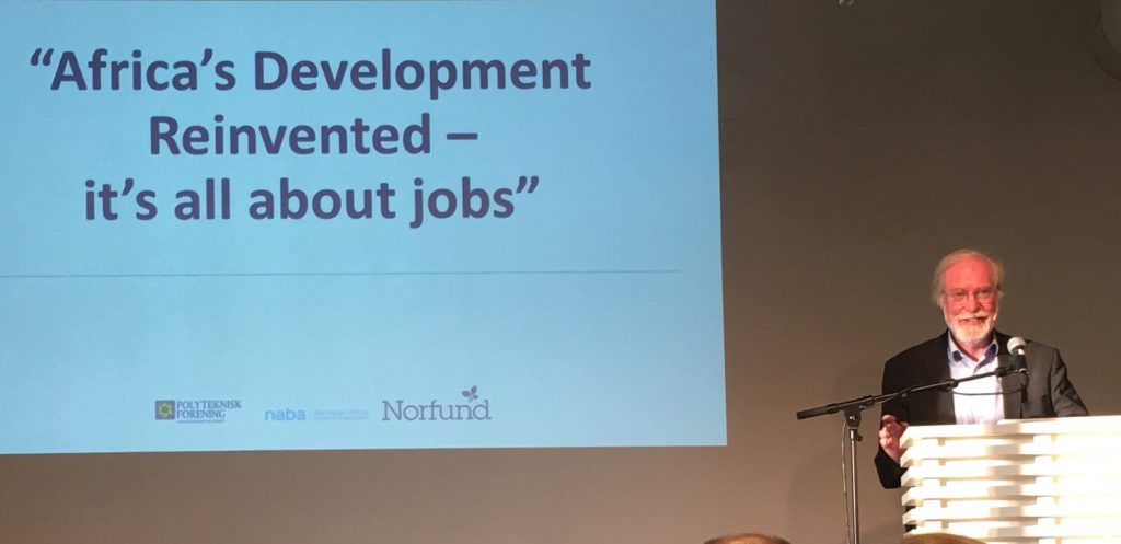 Tema for foredraget var modeller for å skape vekst og utvikling i Afrika. Colliers svar på den utfordringen er at det handler om jobber. Produktive jobber. Jobber som utføres spesialisert innenfor rammen av et formelt firma og ikke av generalister som jobber i en mindre løst sammensatt organisasjon.