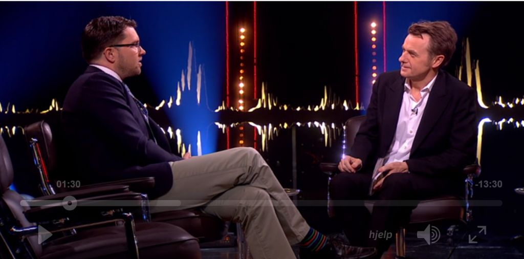En tydelig sliten og sykemeldt Åkesson hos Skavlan i 2015. Skjermdump NRK.
