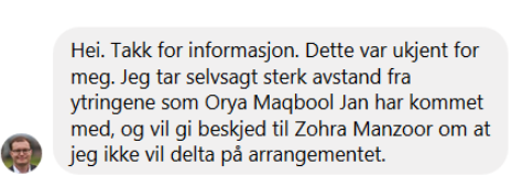 Varaordfører for Venstre takket altså ja til å delta på et arrangement der slike holdninger ligger til grunn for arrangørens virke. Bjerkholt kan umulig ha sjekket noe som helst før han takket ja til det «flerkulturelle» stevnet.