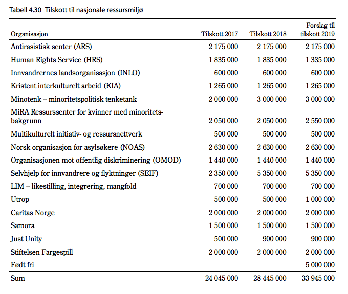 Da vi kom inn på denne posten på statsbudsjettet i 2003, hadde vi med oss over 2 millioner kroner, som over tid er blitt redusert. Med SV i regjering begynte Audun Lysbakken å fase oss ut. Da han måtte gå, fortsatte Inga Marte Thorkildsen (SV) i samme spor. I statsbudsjetter for 2014 foreslo den rødgrønne regjeringen vår bevilgning til 500.000 kroner, som statsråd Solveig Horne (FrP) økte til 900.000 kroner. Den gang klarte Aftenposten å lage en spinnvill reportasje om at Regjeringen «slenger penger etter oss». Det er vel bare å anta at «de røde mediene» denne gangen vil lage skikkelig «gladsaker» på å bli kvitt oss.