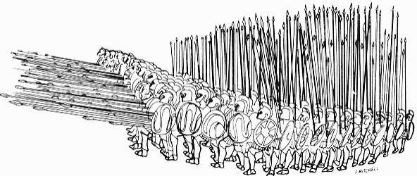 Illustrasjon av oppstilling i falang, en antikk stridsformasjon (Wikipedia):