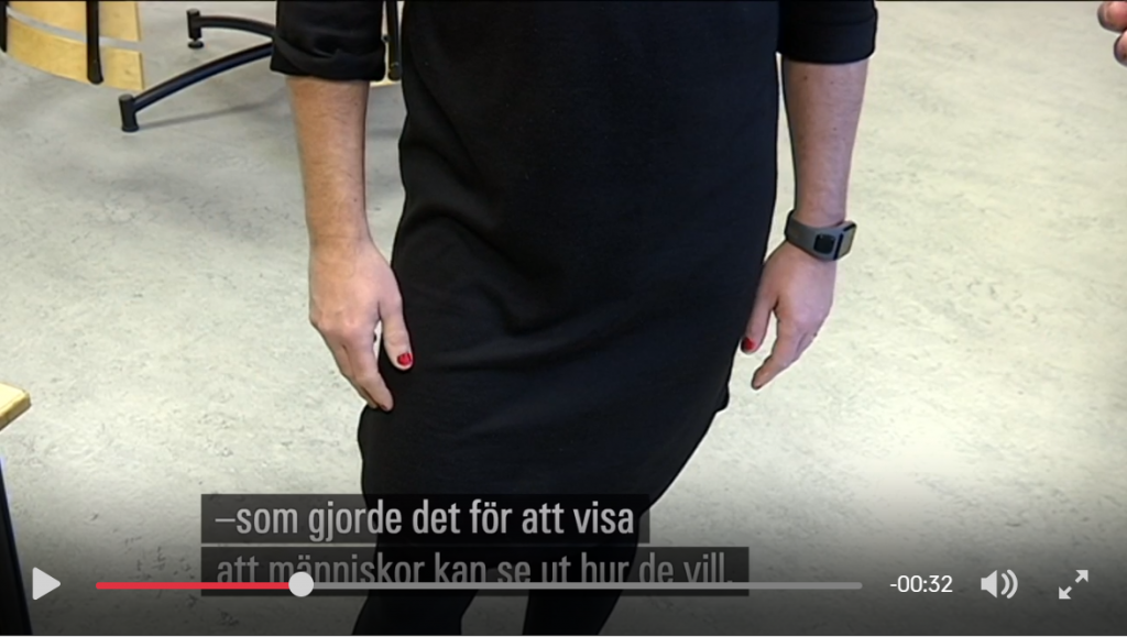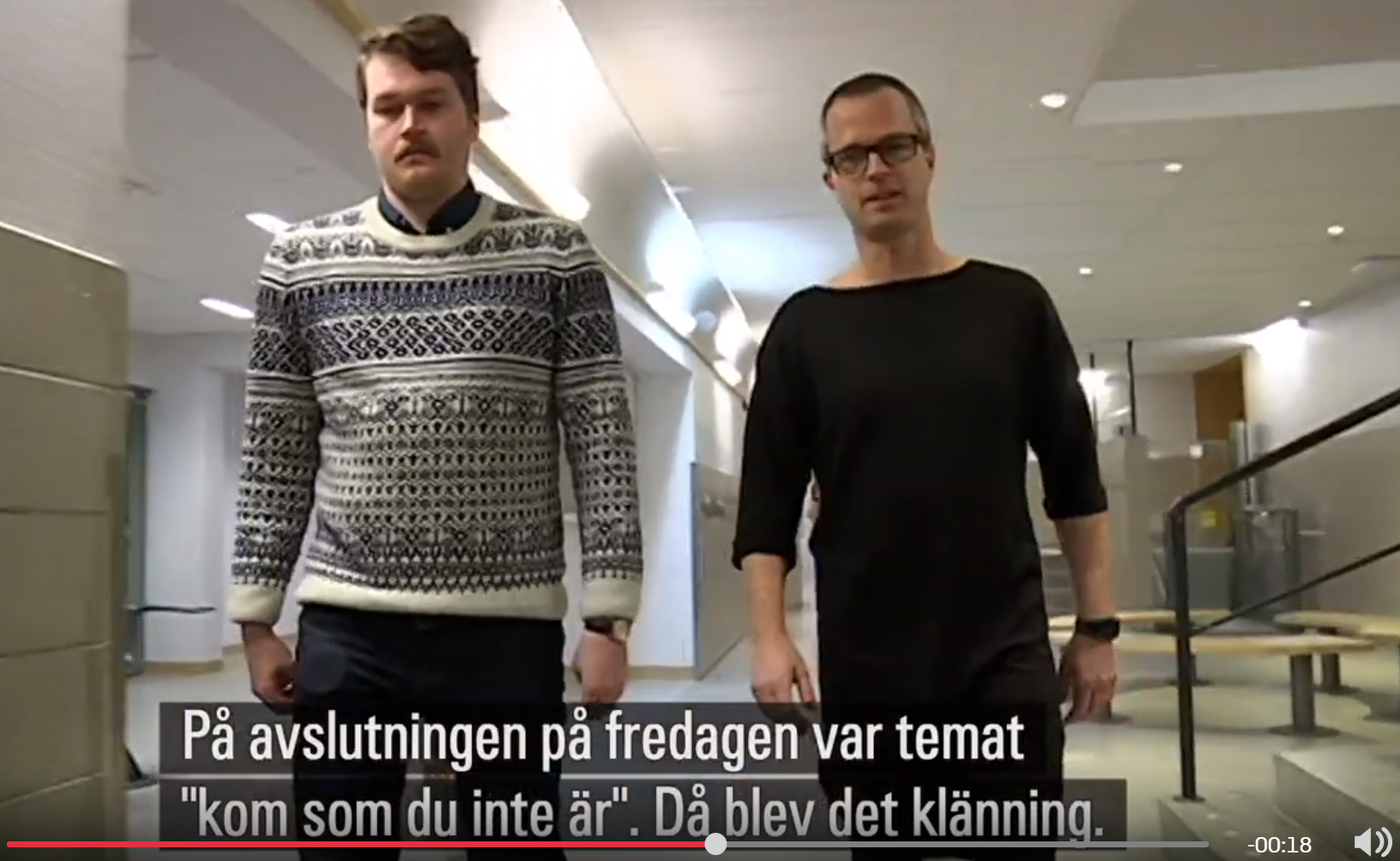 Under prideuken tok han testingen, eller hjernevasken, ett skritt lengre. Da møtte han også opp i kjole (klänning). Han var sikker på at han ikke ville få negative kommentarer, og det fikk han heller ikke. Tvert om fikk han bare positive kommentarer. Men det var han ikke så tilfreds med.