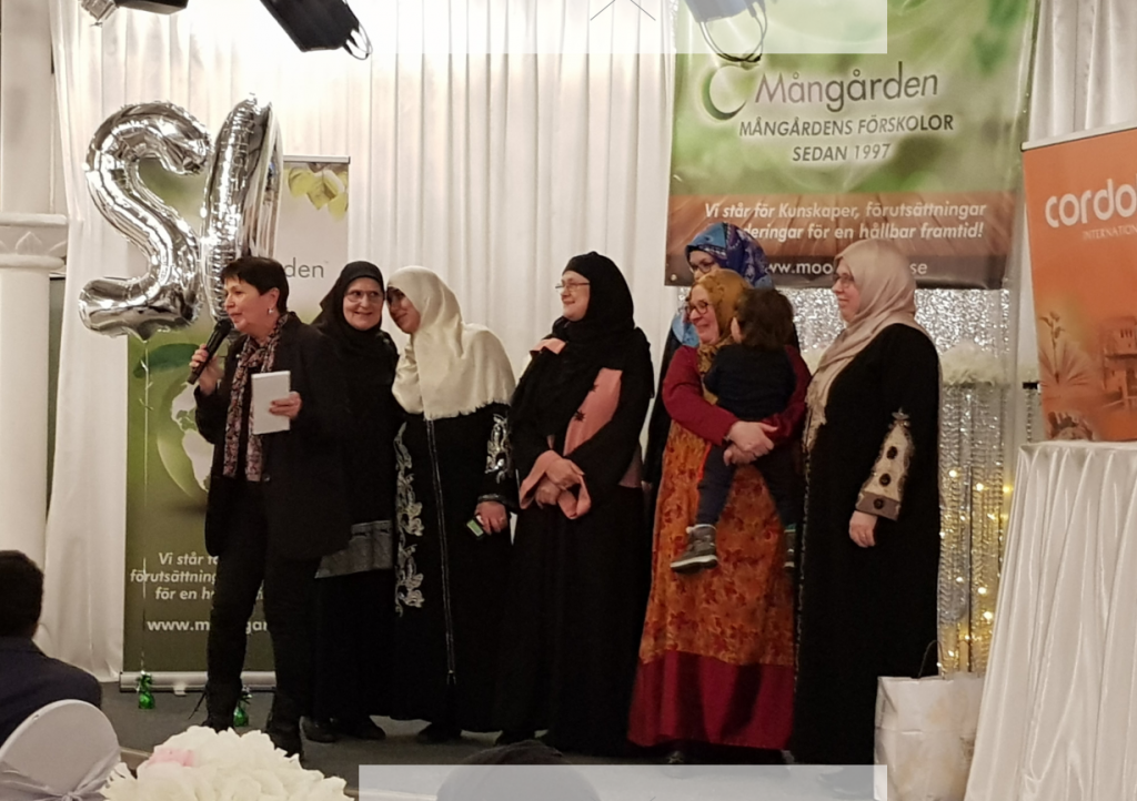 Hvilken ideologi tror Fridolin blomstrer i all sin uskjønnhet på dette «Midtøsten-fotoet» fra Mångården, som her i 2017 feirer 20 år som friskole – i Sverige?