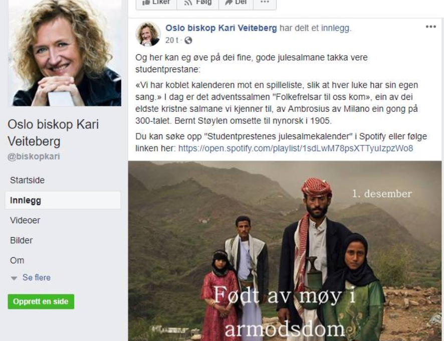 Oslos biskop Kari Veiteberg delte innlegget på Facebook i helgen – med takk til studentene: