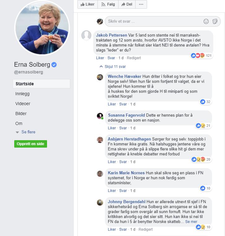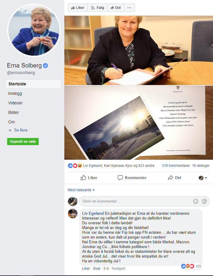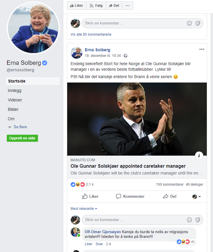 En leser påpeker det faktum at uansett hva statsministeren legger ut på Facebook, så handler kommentarfeltet om noe helt annet: