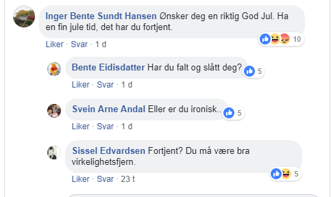 Og kommentarfeltet ga kontant tilbakemelding, som denne: