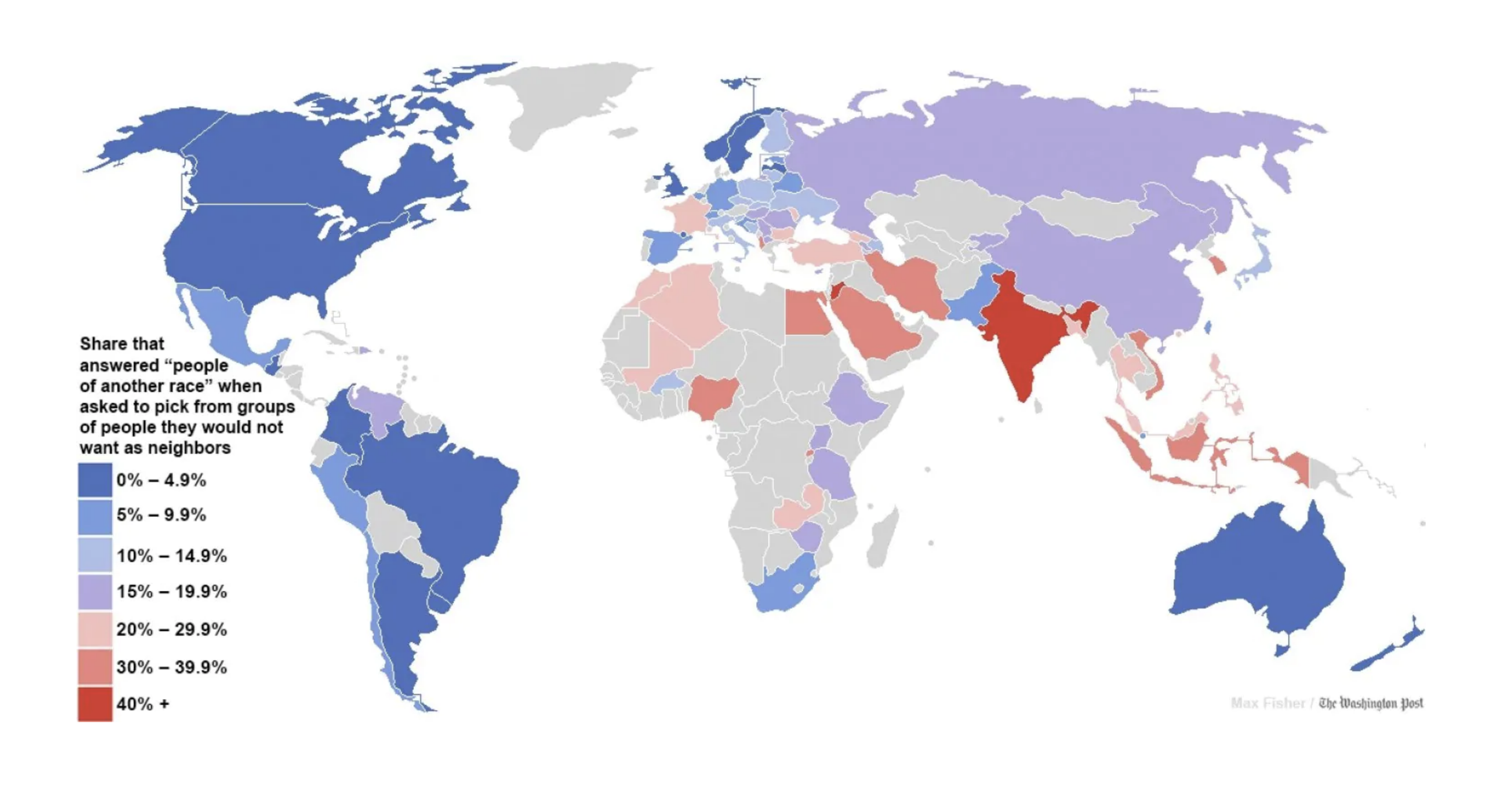 Det er urovekkende når Sverige, hvor bare 1,4 prosent oppga at de ikke vil ha personer av en annen rase som naboer (Norge på tredjeplass med 2,8 prosent), har utviklet seg slik det har gjort.