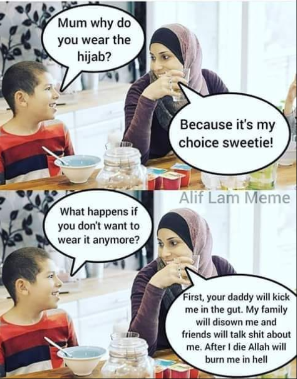 Dette er vel innenfor hvordan nidkjære imamer tenker og uttaler seg til sine undersåtter. Og friheten for svært mange kvinner til å ta på og av hijab som man selv ønsker, er like liten som friheten er i kollektivistiske kulturer til fritt å kunne velge mellom arrangert ekteskap og kjærlighetsekteskap.
