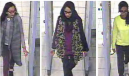 De tre jentene som tok seg til IS tidlig i 2015. Her gjennom sikkerhetskontrollen på Heathrow.