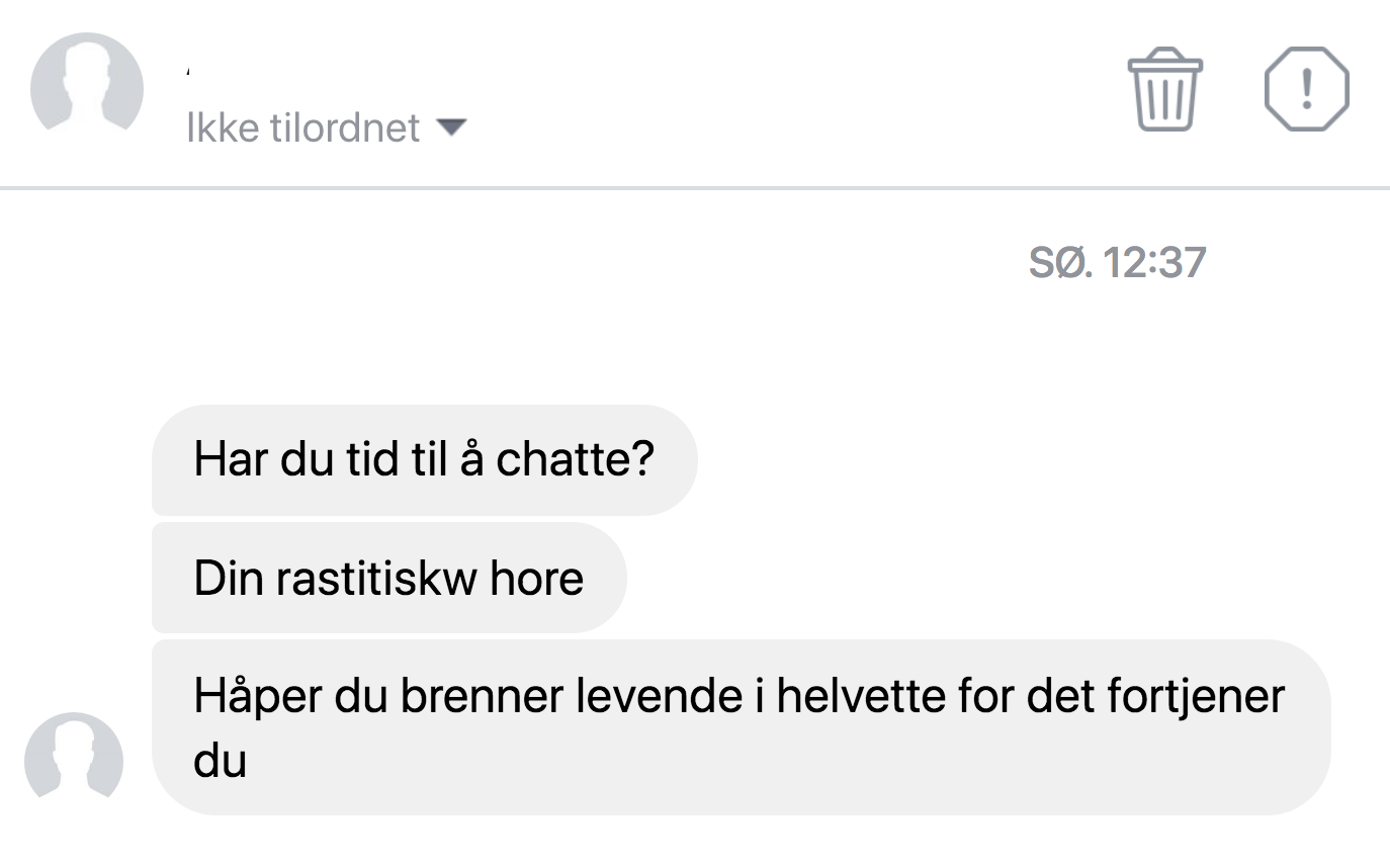 Men det er da slett ikke bare politikere som må tåle slike hatefulle og truende meldinger. De tikker da inn i vår innboks også med ujevne mellomrom, uten at vi snakker for høyt om det. For hvorfor gi dem oppmerksomhet? Hvis dette er nivået de ligger på, hva blir igjen av «snakke sammen»? Som ikke betyr at man trenger verken å være eller bli enige, men man forstår i alle fall hva motparten måtte mene og hvorfor – hvis en vil.