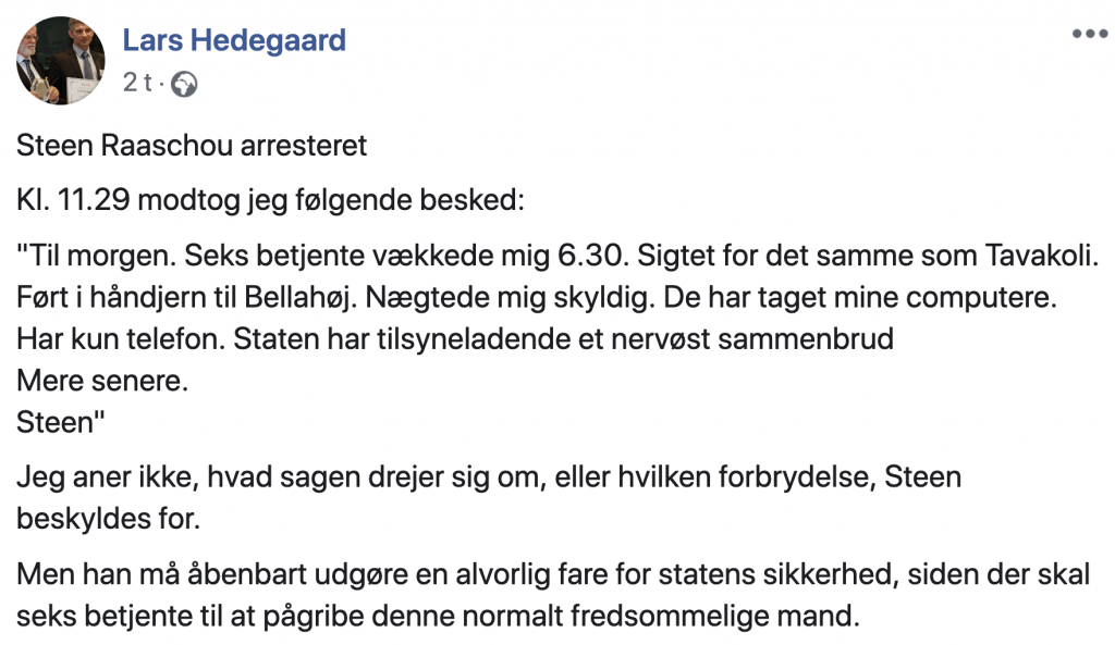 Både Steen og Juhl tok kontakt med en annen «fengslet» mann, nemlig Lars Hedegaard, som vi har omtalt tidligere i dag.