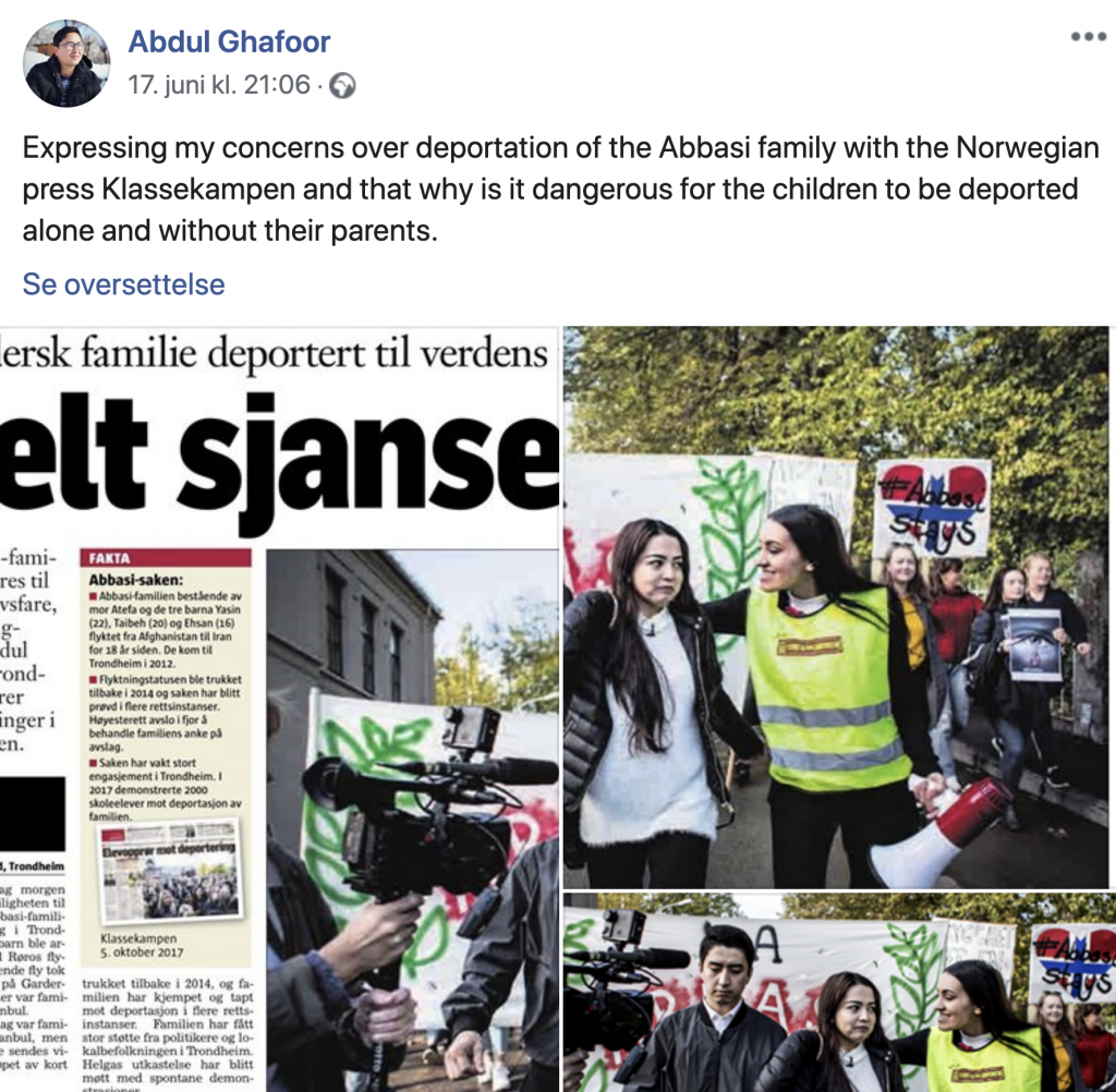 Men hvem er så denne Ghafoor? Abdul Ghafoor har også en åpen Facebook-profil. Hans siste FB-oppdatering i skrivende stund, er et intervju med ham selv – i Klassekampen 17. juni.