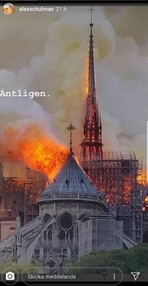 Den samme Schulman lastet opp et bilde av Notre Dame da denne Europas mest berømte kirke brant tidlig i vår. Schulman hadde kun én kommentar til bildet: