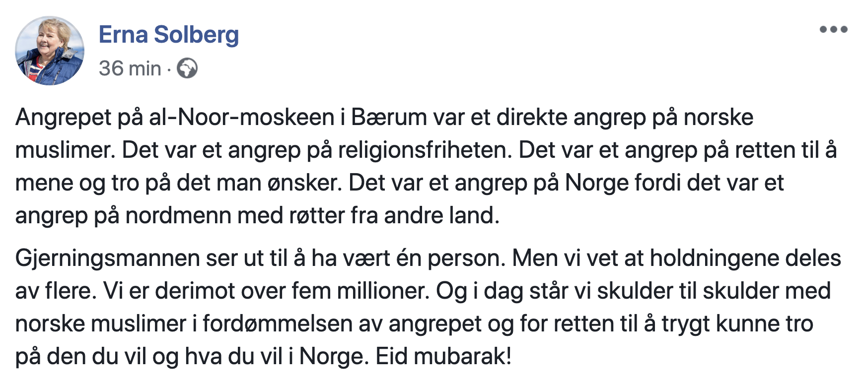 Selvsagt skal muslimer i Norge, som oss alle andre, ha det trygt. Men det MSM gjør er å generalisere fra en ung manns groteske handlinger til et norsk samfunn fylt med «muslimhat» og rasister. Alle vet at det ikke er sant, Norge er ett av de minst rasistiske og mest vennlige land å bo i. Nordmenn flest er ikke muslimhatende rasister.