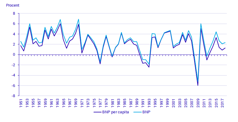 Bruttonasjonalprodukt (BNP) beskriver størrelsen på et lands økonomi ved å måle verdien på alle produserte varer og tjenester. Den grunnleggende ideen er at BNP påvirkes positivt etter hvert som befolkningen vokser, da det vanligvis betyr at både forbruk og produksjon øker. Men «vanligvis» i Sverige, er ikke så veldig vanlig.