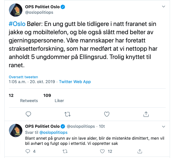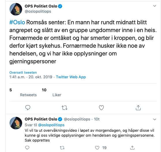 Dette er bare noen av hendelsene som politiet håndterer, da de «mindre saken» neppe når politiets twitter. Men verre er det at noen av de refererte hendelsene beskrives som ran, der gjerningspersonene er ute etter penger, mobil eller klær, mens andre saker «kun» preges av volden, og råere vold. Det får politiet til å frykte at en ny trend er på vei i Oslo, der altså gjenger bruker umotivert vold for voldens skyld mot personer som er alene. Skulle denne eventuelle trenden gi noen form for «kriminell kredibilitet» til gjerningspersonene? I så fall vet vi om en del land der dette ikke er uvanlig, så da kan man kanskje hente noen erfaringer derfra?
