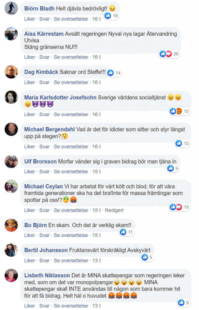 På Facebook koker det av sinte svensker. Hos Jan Sjunnesson, forfatter og samfunnsdebattant, sies blant annet dette: