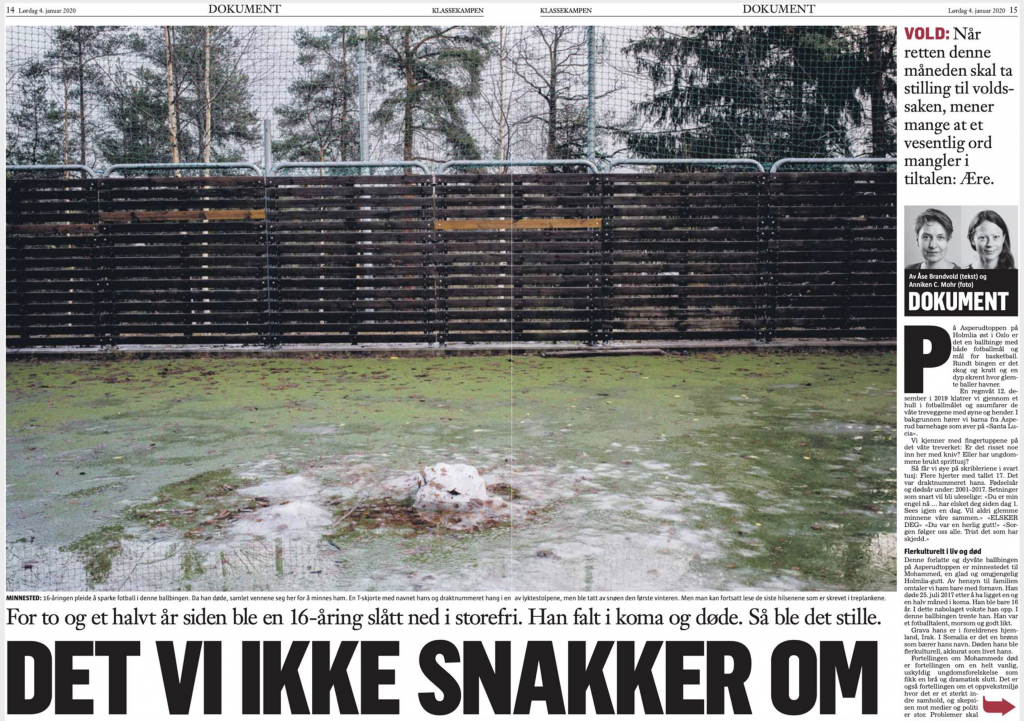 Lørdag 4. januar hadde Klassekampen en artikkel med tittelen «Det vi ikke snakker om» (bak betalingsmur). Den handler om drapet på Mohammed i 2017 på Holmlia i Oslo. Kort fortalt ble Mohammed (16) slått ihjel av en 18-åring, angivelig fordi han var kjæreste med 18-åringens søster. Politiet var ikke særlig snakkesalig i denne saken (heller), som gammelmediene (igjen) aksepterte. Noe av tausheten kan kanskje tilskrives at hendelsen skjedde 12. juni. Mohammeds liv sto ikke til å redde og han døde på Rikshospitalet 25. juli. Midt på sommeren er det som kjent lite aktivitet både i medier, skoler og ungdomslag og -foreninger. Fra politiets side het det at han døde etter «en voldshendelse på Holmlia».