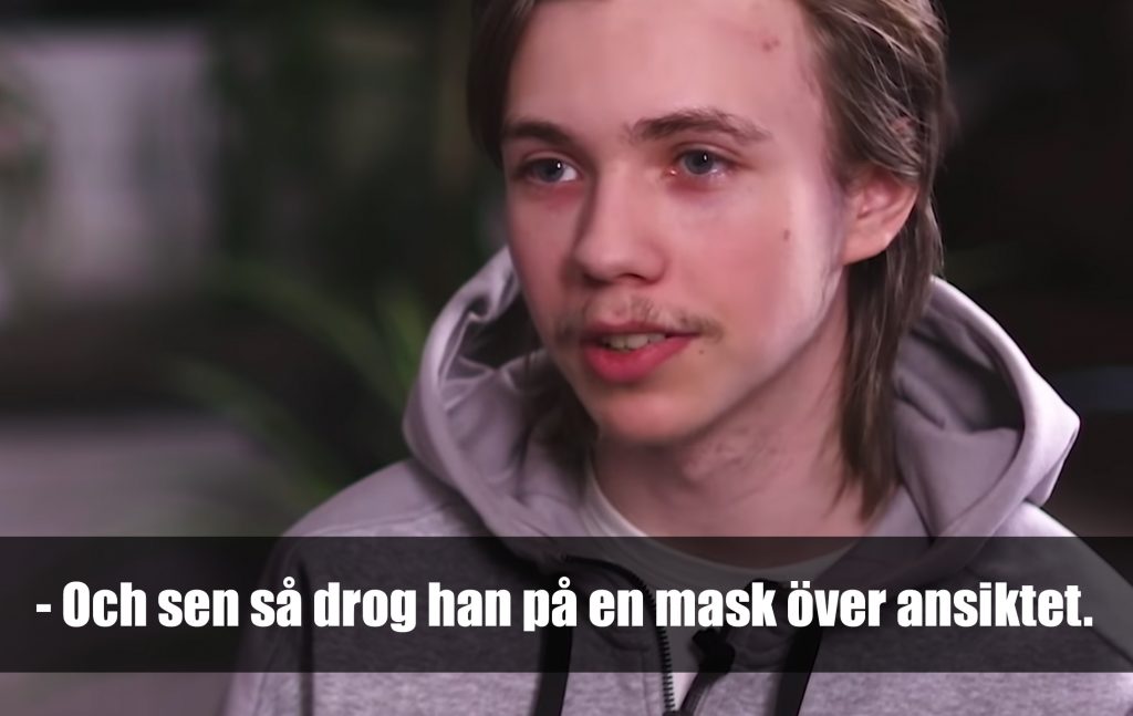 Det er på vei til ICA at to unge menn kommer gående bak dem. Den ene drar en maske over ansiktet. Det første Hampus tenkte var hvordan han skulle få søsteren i sikkerhet. Hampus ba Bella fortsette å gå uten å se seg tilbake.