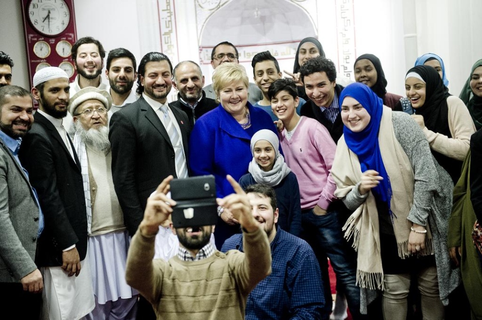 Dette er ikke et bilde av Erna Solberg sammen med muslimer. Dette er Erna Solberg sammen med 30 norske borgere.