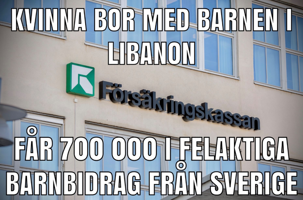 – Saksbehandlere i svenske NAV slår alarm, forteller den frittstående journalisten Joakim Lamotte. En halv milliard kroner, først og fremst barnebidrag, har blitt utbetalt siste fem årene til folk som ikke bor i landet lenger. Ett eksempel er en kvinne som bodde i Malmö. I 2012 flyttet hun tilbake til Libanon med sine seks barn. Siden den gang har hun fått utbetalt over 700.000 kroner i barnebidrag, flerbarnstillegg og forlderbidrag, forteller kilder i NAV (Försäkringskassan) til Lamotte. Kvinnen har også klart å få boligstøtte knyttet til adresse i Malmö mens hun bor i Midtøsten.