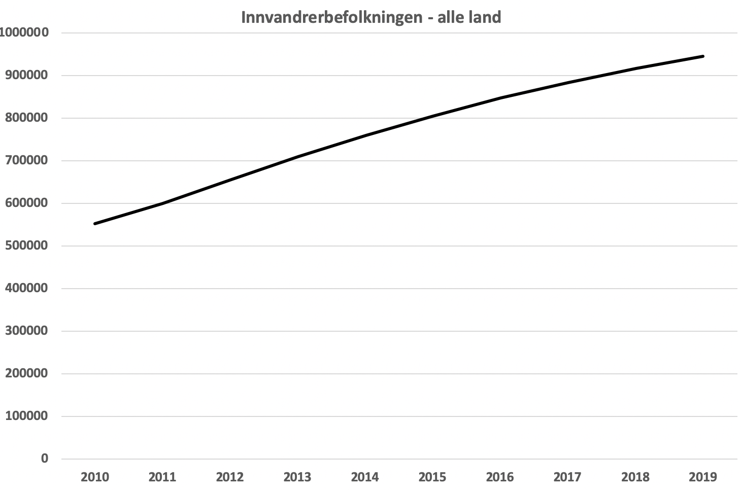 De siste tiårene har innvandrerbefolkningen vokst kraftig, og nærmer seg nå 1 million mennesker (944.402 ved utgangen av 2019). Det er mye for et lite land som Norge, nå med en total befolkning på i overkant av 5,3 millioner.