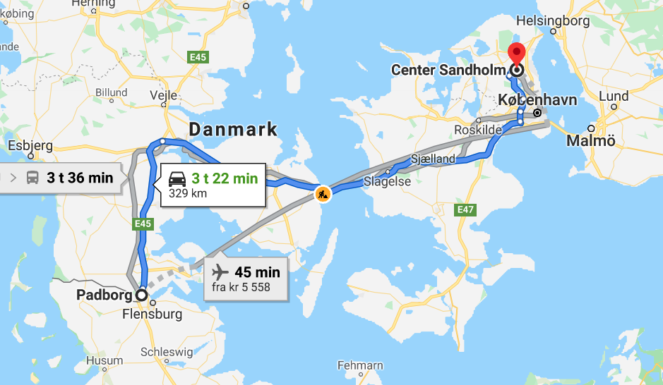 Politiet skal altså transportere asylsøkere fra grensa mellom Danmark og Tyskland på Sør-Jylland (grensebyen Padborg), endog en grense som både Danmark og Tyskland har stengt, for så å transportere de samme til Center Sandholm på Nordsjælland. Det er en omfattende reiserute (jamfør Googles reiseplan), og det med personer en ikke aner om er smittet eller ikke. Da lyder det hult å hevde at «hele samfunnet» må unngå smittespredning.