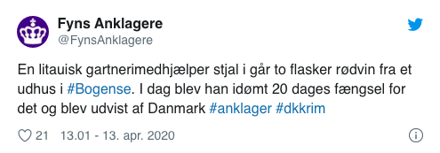 Straffen ble 20 dagers fengsel – og utvisning fra Danmark.