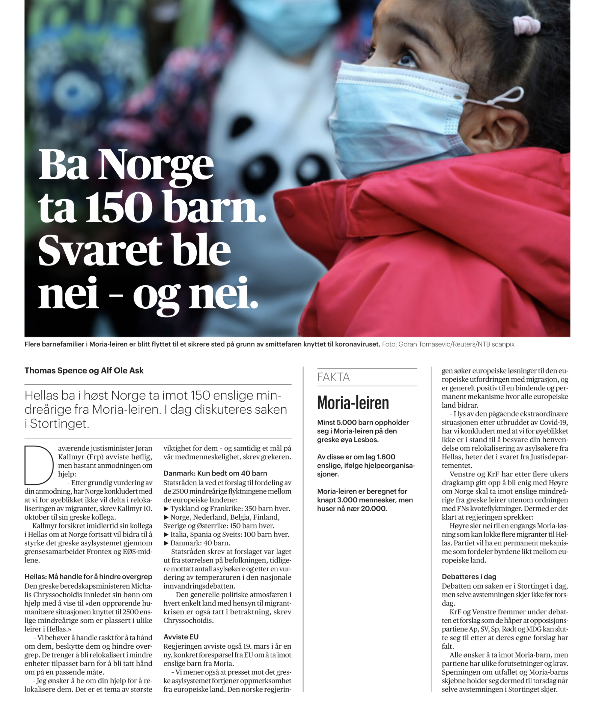 Mens i VG er tonen nå en annen: «Å plukke ut en leir, i et hav av nød, er ikke svaret.»