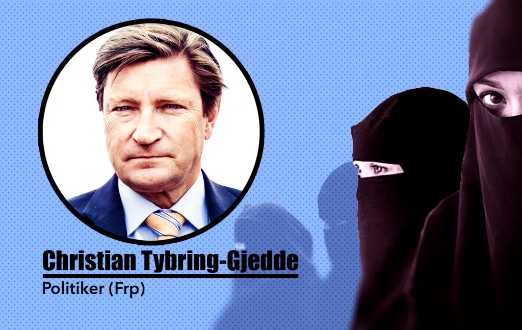 Tybring-Gjedde understreker at hijaben representerer fundamentalistisk islam, noe langt de fleste nordmenn er sterke mostandere av. Han tar også avstand fra den eldre norske mannens måte uttrykke sin motstand på.