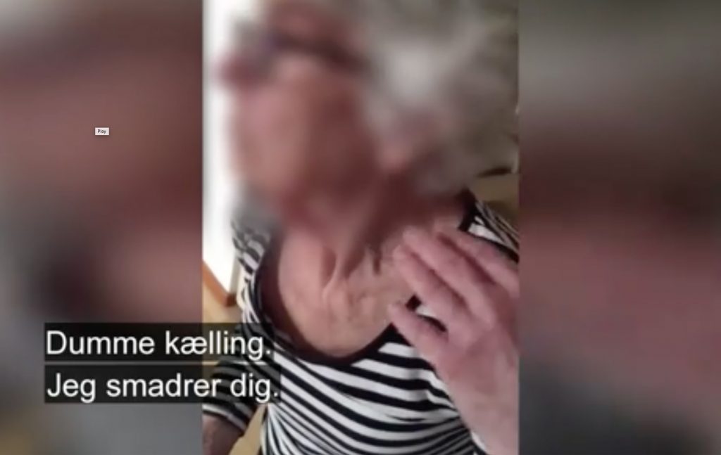 TV 2 publiserte en video sist søndag som utløste et ramaskrik. Videoen viser hvordan en pleieassistent på det groveste skjeller ut og ydmyker en 83 år gammel kvinne. Dette skjer på hennes eget kjøkken på pleiehjem i Helsingør. Utskjellingen og truslene om at hun skal få juling fremføres på engelsk.