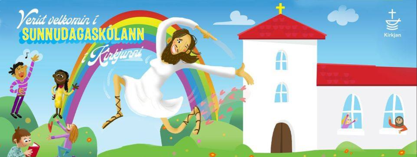 Den islandske kirken ønsker velkommen til søndagsskole.