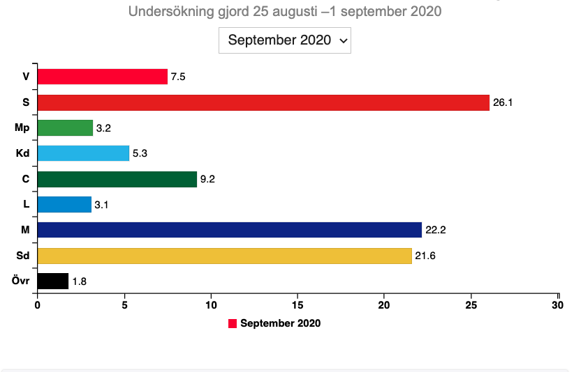 Dytter vi på regjeringens støttepartier, Centerpartiet og Liberalerna, bikker de knapt 40 prosent (41,6). I tillegg har både Miljöpartiet og Liberalerna i flere målinger på rad ligget under sperregrensen på 4 prosent.