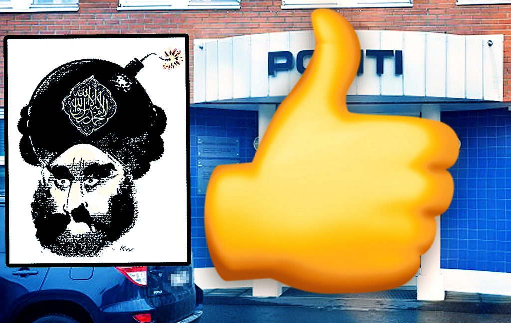 – Min konklusjon var at risikoen i befolkningen må spres. Derfor printet jeg ut Muhammed-karikaturer og hengte dem opp – bevisst – på trafikkerte steder i byen. På kjøpesenteret, busslommer, ved kinoen, hvor det er mange som ville se dem. 21.30 samme kveld står fire betjenter fra politiet på døren. Det hele var surrealistisk, sier vedkommende til HRS.