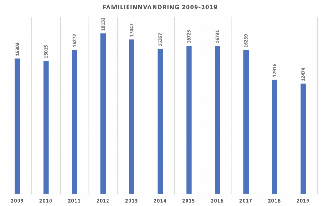 SSB vil gjerne ha frem at familieinnvandringen går ned. Vel, tallene er ingenting å rope hurra for, all den tid nedgangen fra 2018 er på 442. Fra 2017 til 2018 var nedgangen på hele 3.323, som bare forteller oss at det kom svært mange til Norge under folkevandringskrisen utløst i 2015 – og mange av disse har fått familieinnvandring. Dermed kan den like plutselig gå opp – avhengig av politikken som føres på området.