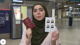 Skjermdump fra NRK-reklame for hijab på passfoto, iscenesatt av Islamsk Råd-kvinne.