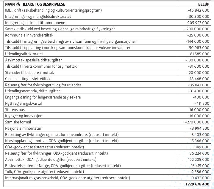 «Vi mener det er store summer å spare på en kritisk gjennomgang av integreringstiltak. Det gjennomføres mange tiltak med liten eller usikker effekt. Vi mener det må strammes inn på bruken av tolketjenester og forventes at personer som har bodd i landet i mer enn 5 år må betale for eventuelle tolketjenester selv.