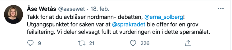 Feilsiteringen sparket i gang en debatt om ordet «nordmann» i redaksjonelle og sosiale medier. Vi beklager at Språkrådet stadig kobles til denne debatten. Det gir et galt og uheldig inntrykk av Språkrådets virksomhet.