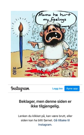 Vi lever i 2021 i Norge, hvor det fortsatt ikke finnes aviser som tør trykke karikatur av en mann som hevdes å ha levd i det 7.århundre i Arabia. Det finnes ingen aviser, TV-programmer eller bøker som kan tulle med profeten av islam i Norge. Vi som fortsatt tør å stå i offentligheten blir stadig hardere rammet av sensur, de siste årene også av sosiale medier. Vi blir utestengt fra Facebook, Instagram, Twitter og YouTube. Vi risikerer at både innleggene og sidene våre blir slettet. Nylig ble vår Instagramside, som «kun» inneholder blasfemiske memes og karikaturer av profeten, slettet uten forvarsel.