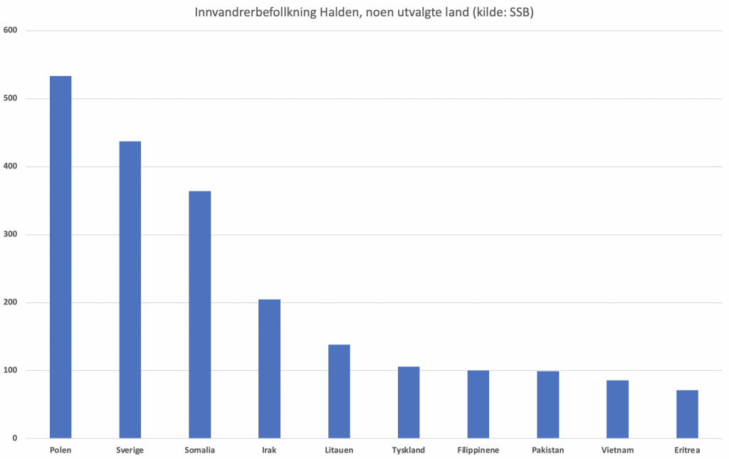 Den som har detaljert kunnskap om Halden, kjenner sikkert også til innvandrerandelen på barneskolene og type bakgrunn de ulike har. Det kan være at noe av forklaringen ligger her, og uansett er det noe en bør kartlegge og følge nøye opp.
