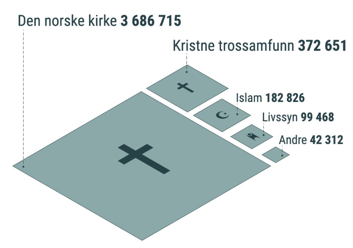 For å illustrere hvor høylytt fire prosent av befolkningen tillates å være, kan en illustrasjon fra SSB over ulike trosretninger i Norge og antall medlemmer av disse, gi en idé: