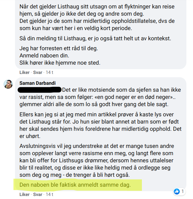 Jeg er stolt over å være «svartskalle» i Norge! skriver Saman Darbandi i Nettavisen, og påstår videre at Sylvi Listhaug (FrP) har bedt alle innvandrere i Norge om å reise hjem.