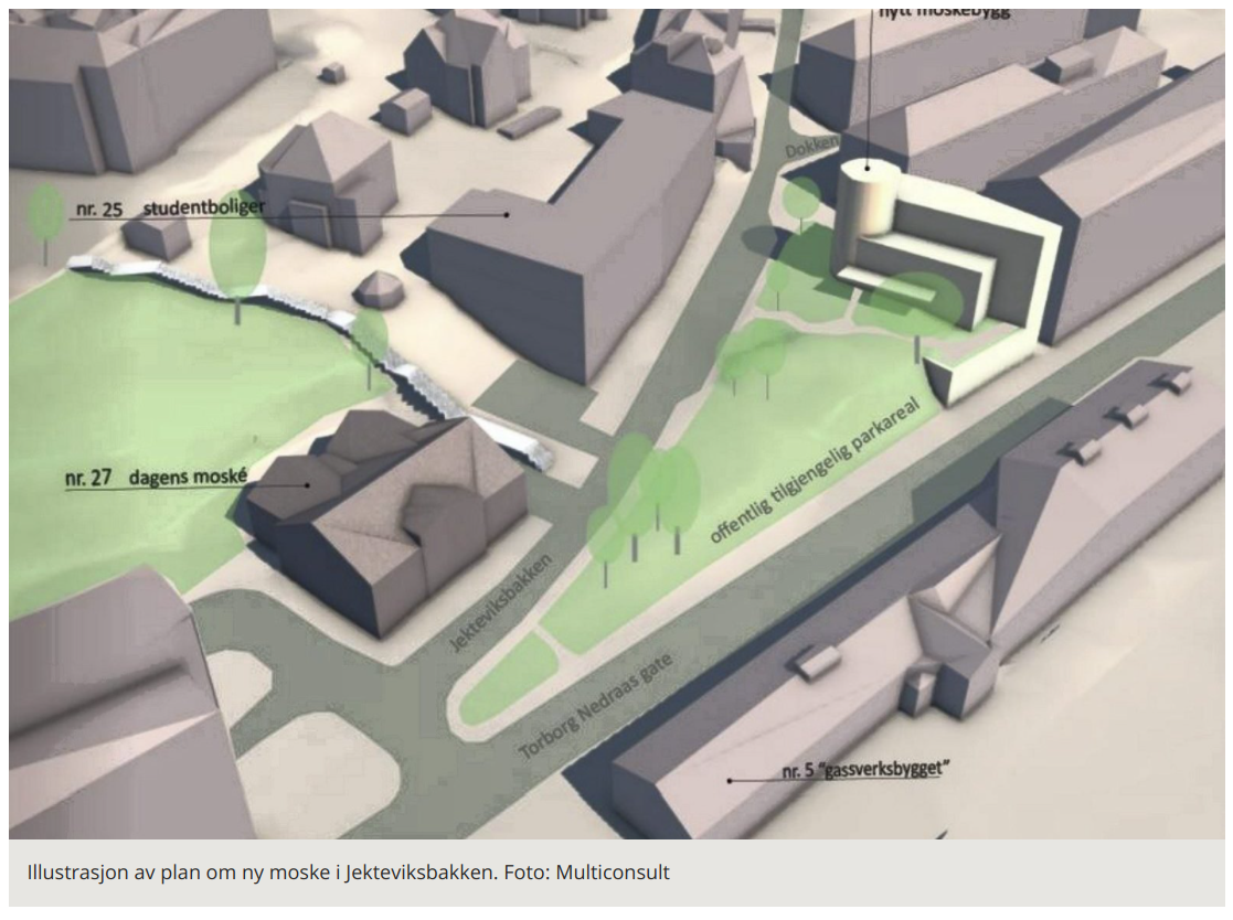 Bergensavisen Bergens Tidende melder onsdag at byrådet har bestemt å gå videre med planene om å bygge gigantmoské i Jekteviken. Moskéen skal kunne huse like mange i bønn som det foreløpig er innbyggere i bydelen. Det ligger dermed an til en lite ønsket fordobling av folketallet i Jekteviken hver fredag.