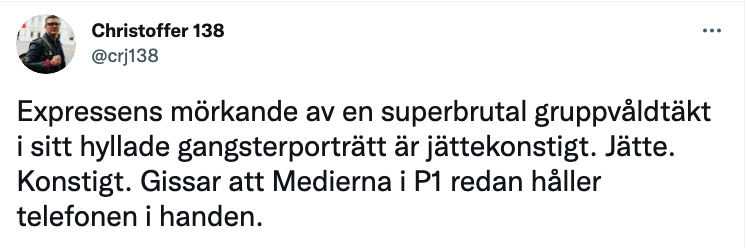Det alternativet mediet Fria Tidar fanget ikke bare opp reportasjen samme dag som den ble publisert, men de minnet oss om hvem rapperen Medhi «Dumle» Sachit er – og hva Expressen utelot å nevne. For vi skjønner at vi står overfor en gjengkriminell når det er akkurat det saken dreier seg om, men Fria Tidar lot seg ikke imponere av journalist Nina Svanbergs henvisning til at Sachit er dømt for «overgrep».
