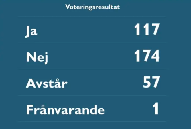 Statsminister Andersson har imidlertid lite å glede seg over i denne avstemningen, utover at hun i historiebøkene vil bli minnet som den første kvinnelige statsminister. Hun ble kun valgt av sine egne, det vil si sosialdemokratene og regjeringskollega Miljöpartiet (MP), totalt 117 ja. Men siden det heller ikke var flertall mot (174 sa nei) kan hun med minst mulig margin (flertall på 175) smykke seg med den historiske tittelen.