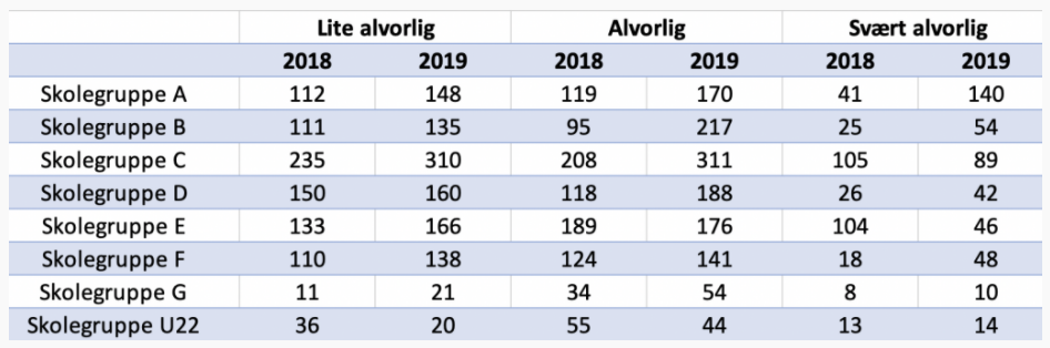 - Antall svært alvorlige hendelser: 592 – som tilsier 147 flere alvorlige hendelser enn året før, en økning på hele 33 prosent.