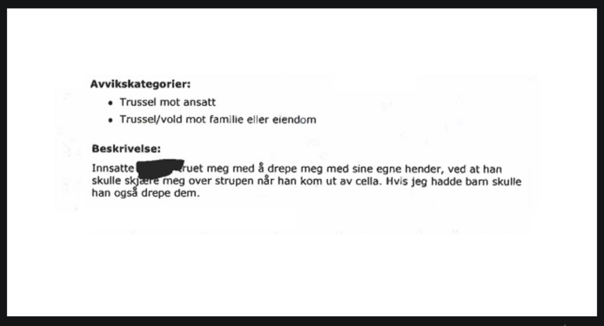 NRK har fått innsyn i avviksmeldinger fra Halden fengsel for 2021, og gjengir et utvalg av disse meldingene. Det er meldinger om grupper av innsatte som felles går til angrep på ansatte, meldinger om angrep med ulike gjenstander og grove trusler. Flere av avvikene beskriver alvorlige trusler og voldshendelser:
