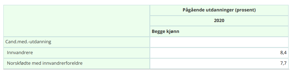 SSB oppgir at rett i overkant av 16 prosent av medisinstudentene har innvandringsbakgrunn.