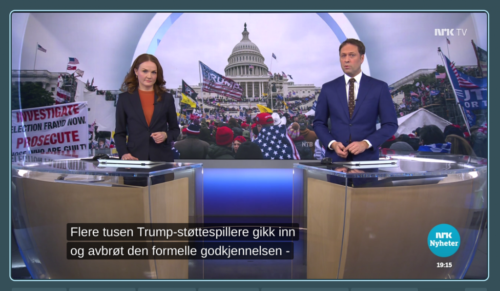 Men mye tilsier at NRK ikke har interesse av å formidle denne nyheten, siden kanalen fortsetter sin sterke anti-Trump-kampanje. Selvsagt nevner heller ikke statskanalen at Capitol Hill-politiet selv slapp demonstrantene forbi sperringene, og at majoriteten av dem som tok seg inn i kongressbygningen fulgte strømmen. Også dette er dokumentert på videoopptak og kan sees for eksempel her.