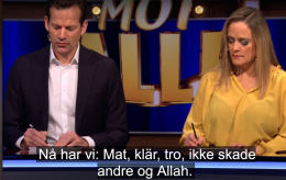 HRS har lenge mistenkt at toppolitikere som Huitfeldt og statsråd Anette Trettebergstuen kan forsvinnende lite om islam. Bekreftelsen fikk vi i fjor høst i programmet «Alle mot alle» på TV Norge (program nummer 5). Dette er et Quizprogram med kjendiser. De to fikk spørsmål om hva som er islams fem søyler: – Dette var veldig vanskelig, falt kommentaren fra den ene. Og hva svarte de? Mat, klær, tro, ikke skade andre og Allah. Glemt var trosbekjennelsen, rituell bønn, fasten, pilegrimsreisen og zakat (almisse). Det var fem bom av fem mulige. Minst like mange bom som det var å hente Taliban på 1. klasse til Norge.